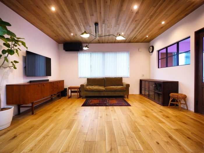 また、最近では柱や床だけでなく、天井の一部に木の板を使用したりするのも人気です。