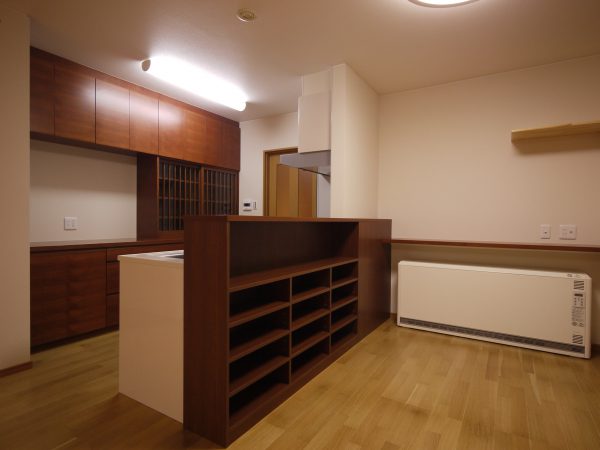 キッチンの作り付け収納は奥様の要望通りの作りになり、とても喜んで頂きました。